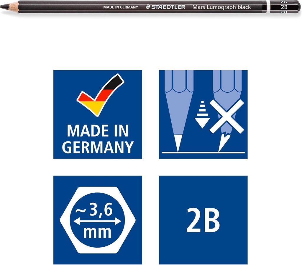 Hộp 12 cây bút chì 2B Staedtler Mars Lumograph thân đen - 100B-2B cao cấp, ruột chì mềm, nét đậm rõ, chống gãy hiệu quả. Phù hợp vẽ kỹ thuật, mỹ thuật, viết tay, chính hãng Đức.